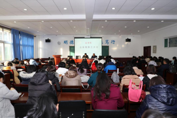 1226日,快猫短视频 召开全体教职工大会。院长冯希哲、院党委书记朱晋中,学院班子全体成员出席会议。会议由冯希哲主持。