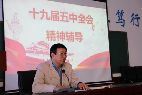 11月6日上午,院党委书记朱晋中做了“十九届五中全会精神辅道”专题党课,全院教师党员参与了此次党课。朱晋中首先结合学院实际工作,对十九届五中全会精神做了解读;随后,全体党员共同观看了《中共中央关于制定国民经济和社会发展第十四个五年规划和二〇三五年远景目标的建议》的报告视频。