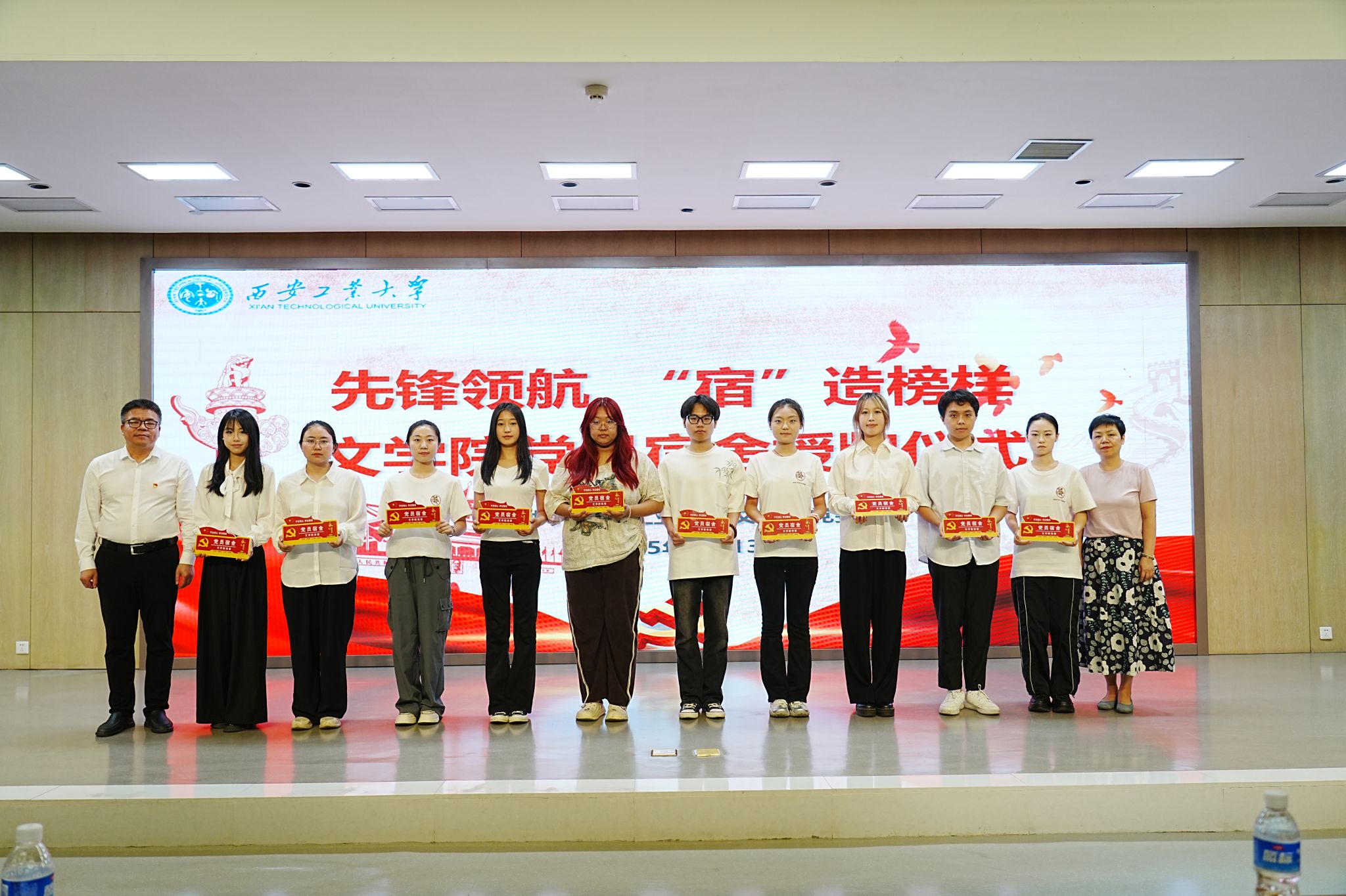 “先锋领航 ‘宿’造榜样”党员宿舍授牌仪式在未央校区图书馆报告厅举行。学院党委书记程建虎、党委副书记张郁、副院长吴妍妍、敬晓庆、各系室(中心)负责人、支部书记、专业教师代表及全体学生党员共同见证这一庄严时刻。授牌仪式由院学工办主任、汉文本科生党支部书记李聪主持。