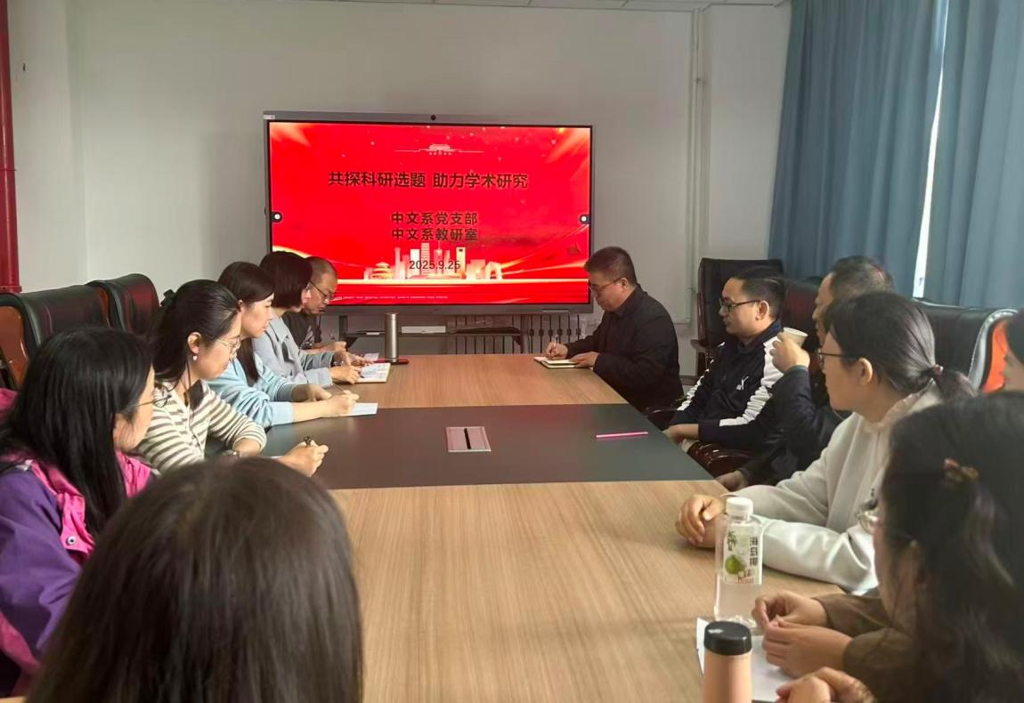 “问道•转型•深耕”改革精神,中文系党支部联合教研室于2025年9月25日成功举办“共探科研选题、助力学术研究”党建活动。本次活动由党支部书记岳立松主持,旨在通过党建引领,凝聚全系教师智慧,聚焦2026年度国家社科基金及教育部人文社科项目申报,共同探讨学术前沿,凝练科研方向,助力学术创新与学科发展。