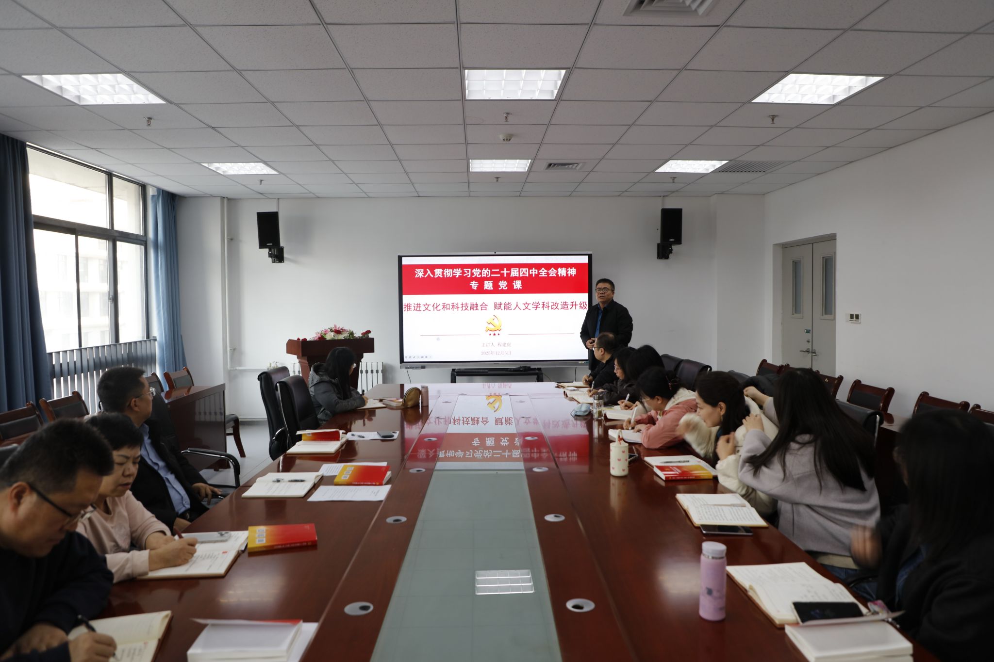 院长程建虎以“推进文化和科技融合 赋能人文学科改造升级”为主题,为学院党委班子成员、各党支部书记讲授专题党课。