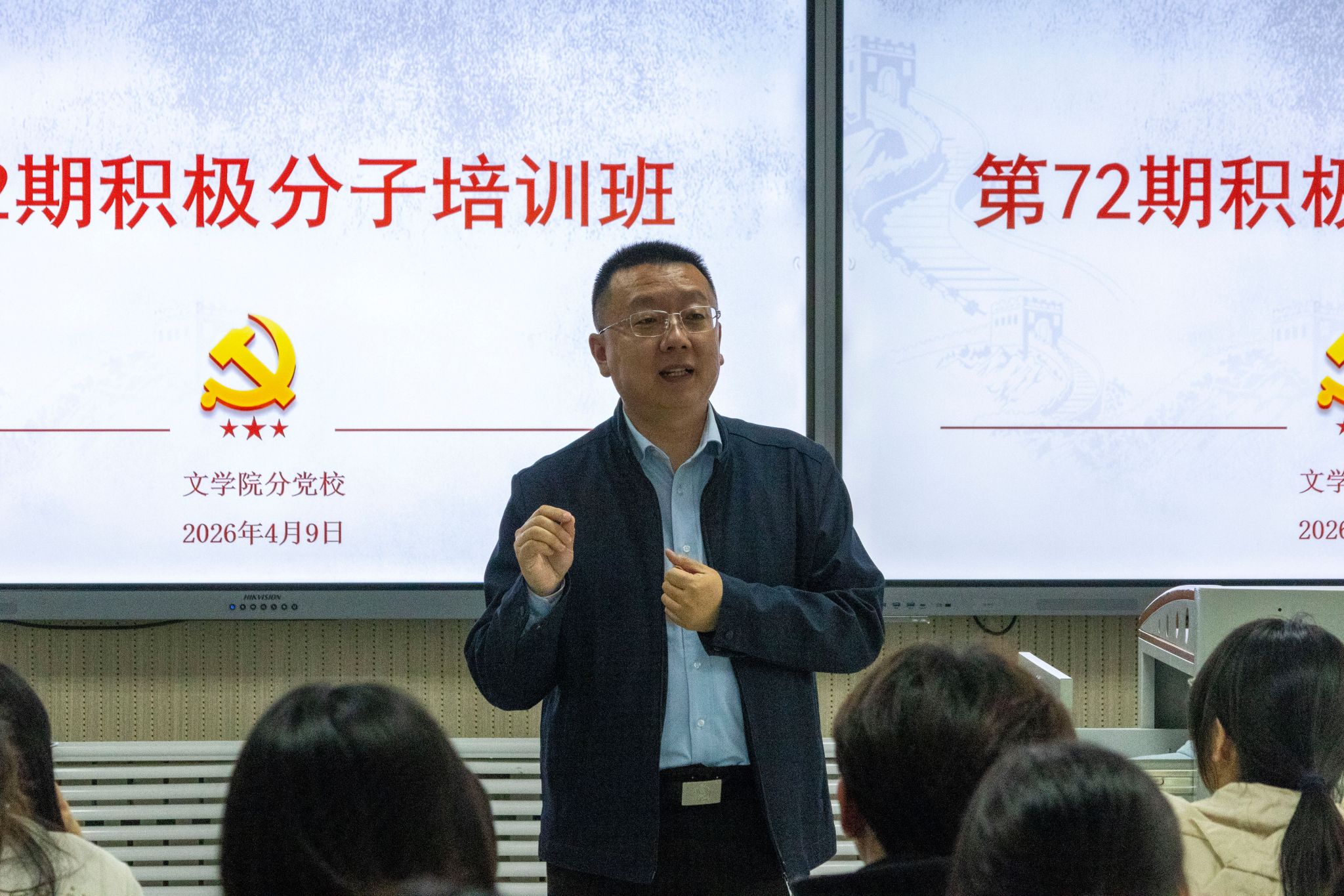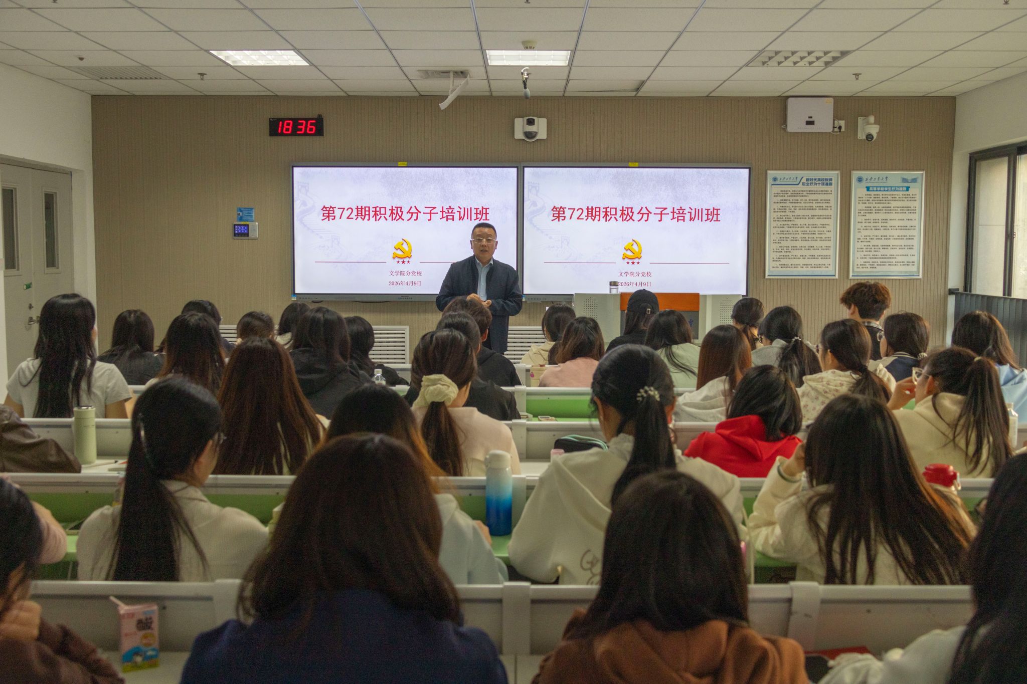 分党校第72期入党积极分子培训班开班仪式在教9-222教室举办。学院党委书记姜冰清出席并讲授开班第一课。分党校班主任王嘉以及培训班全体学员参加。