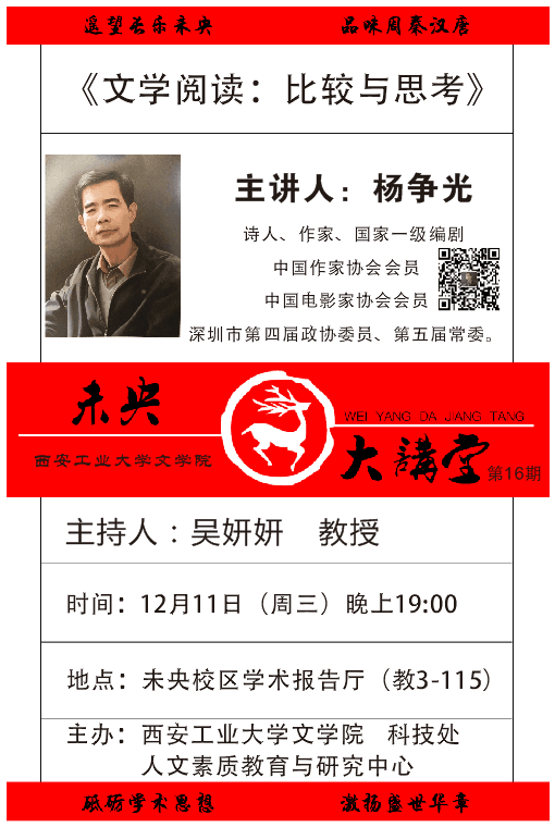 欢迎各位教师、学生积极参加《未央大讲堂》第十六期讲座,转变创新观念,提升创新思维能力,感知当代知名学者的魅力。