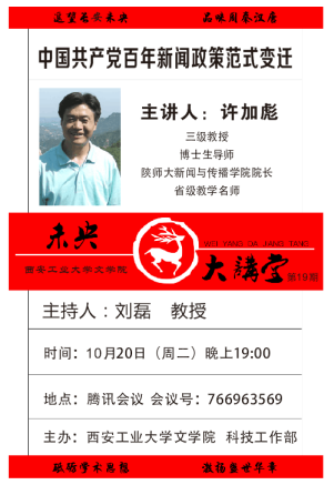 、科技工作部联合举办“未央大讲堂”系列文化讲座,现将第十九期讲座信息通知如下: