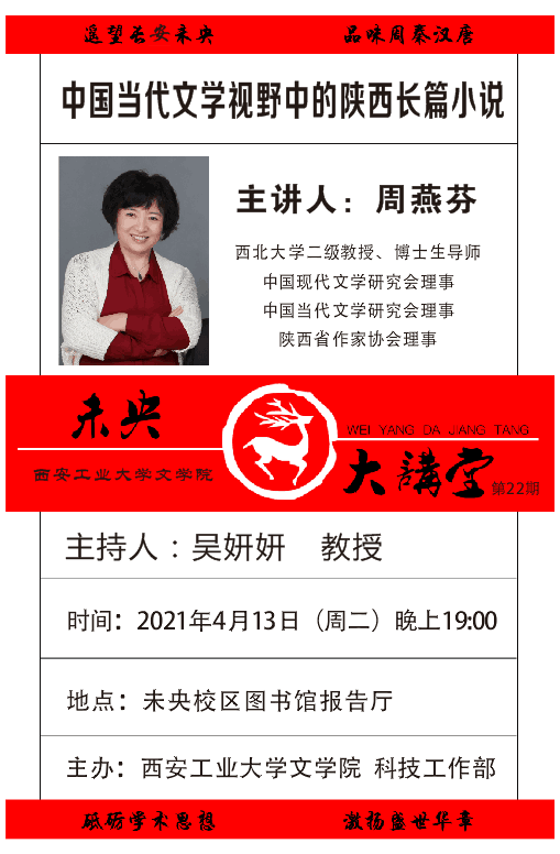 欢迎各位教师、同学积极参加《未央大讲堂》第二十二期讲座,转变创新观念,提升创新思维能力,感知当代知名学者的魅力。