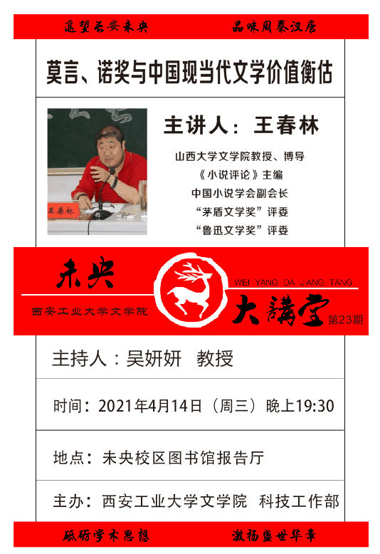、科技工作部联合举办“未央大讲堂”系列文化讲座,现将第二十三期讲座信息通知如下: