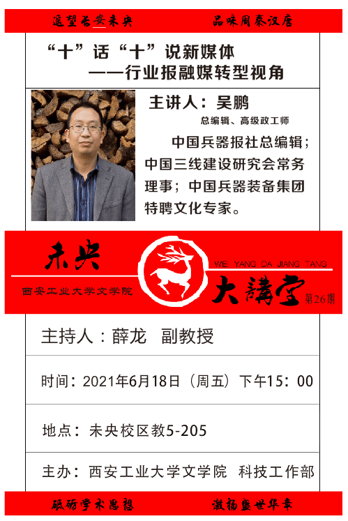 、科技工作部联合举办“未央大讲堂”系列文化讲座,现将第二十六期讲座信息通知如下: