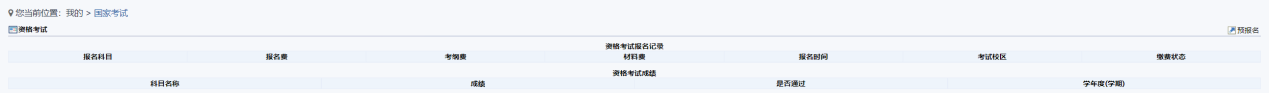 信息综合服务平台(//ehall.km-dsp.net),然后进入教务管理信息系统,在菜单“我的->国家考试”,进入以下界面,点击“预报名”。