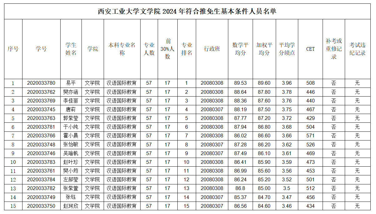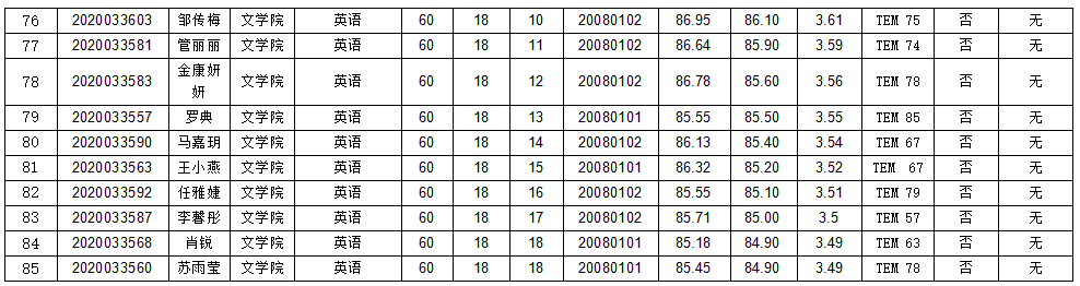 根据学校《快猫短视频 推荐(接收)优秀应届本科毕业生免试攻读研究生实施办法(试行)》和《关于做好2023年快猫短视频 推荐优秀应届本科毕业生免试攻读研究生工作的通知》文件精神,经教务处核算和学院复核、筛查,以下85名同学符合2024年“推免生”基本条件,现将名单公示如下