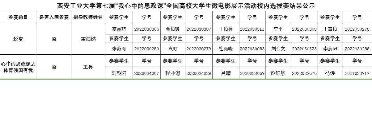 附件:第七届“我心中的思政课”全国高校大学生微电影展示活动校内选拔赛结果名单