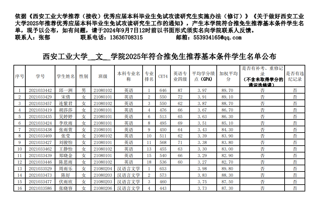 快猫短视频 2025年符合推免生推荐基本条件学生名单公布