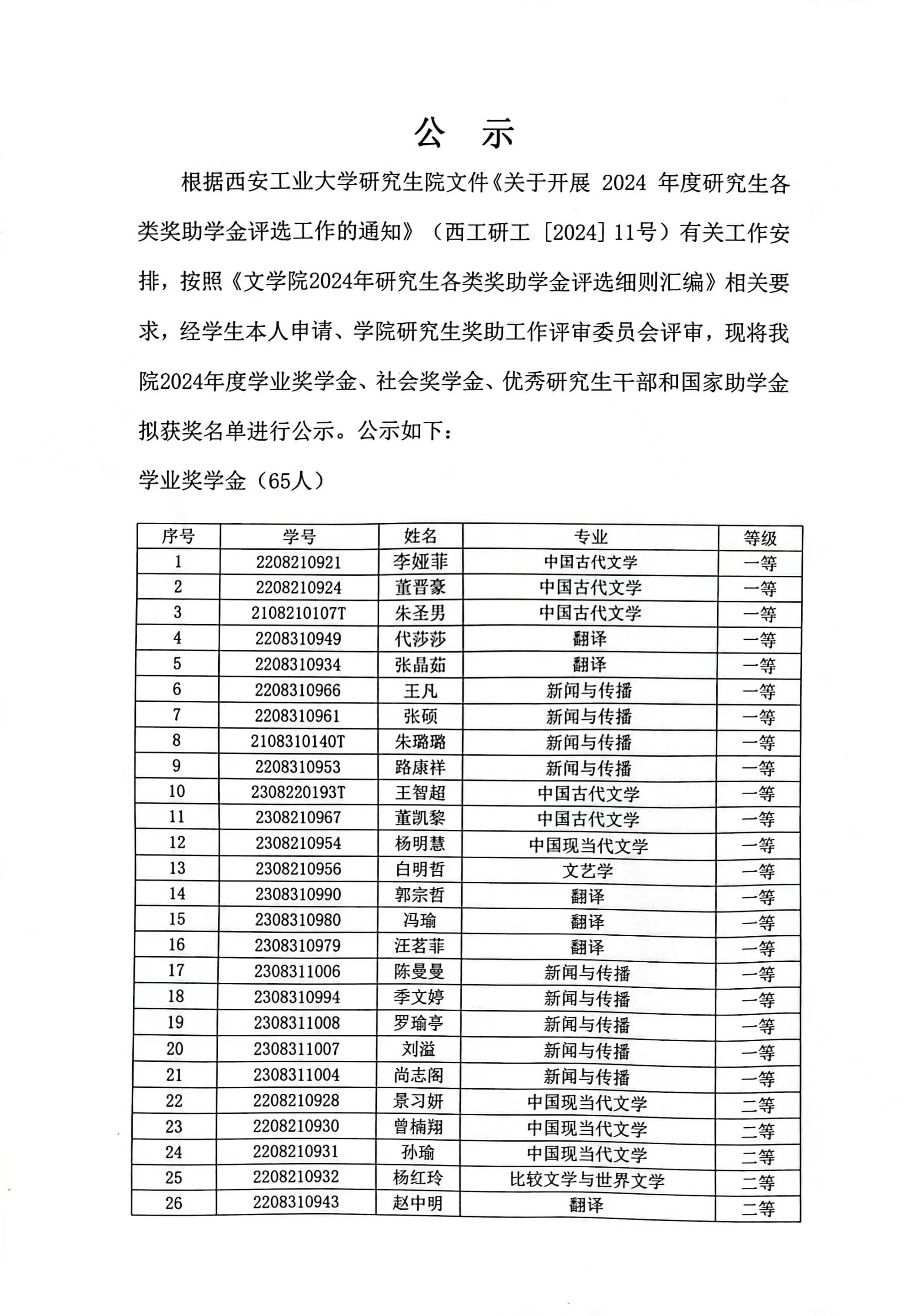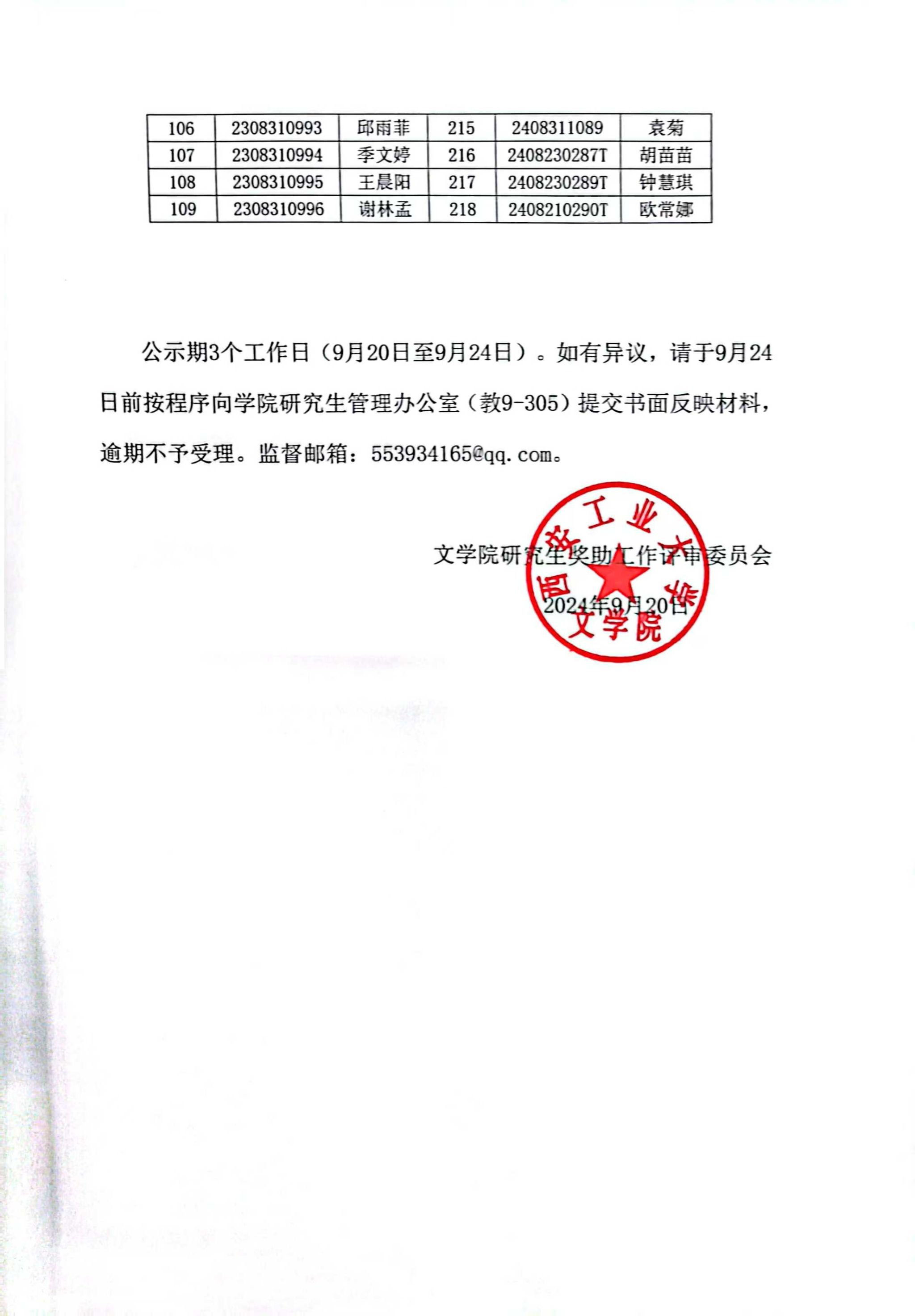 快猫短视频 2024年研究生学业奖学金、社会奖学金、优秀研究生干部和国家助学金拟获奖名单公示