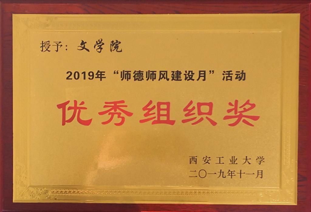 获得学校颁发的“2019年师德师风专题学习及网络竞答”优秀组织奖。同时,学院有6位教师获得此项活动的优秀个人一等奖,9人获得二等奖,10人获得三等奖,获奖总人数高居全校第一。