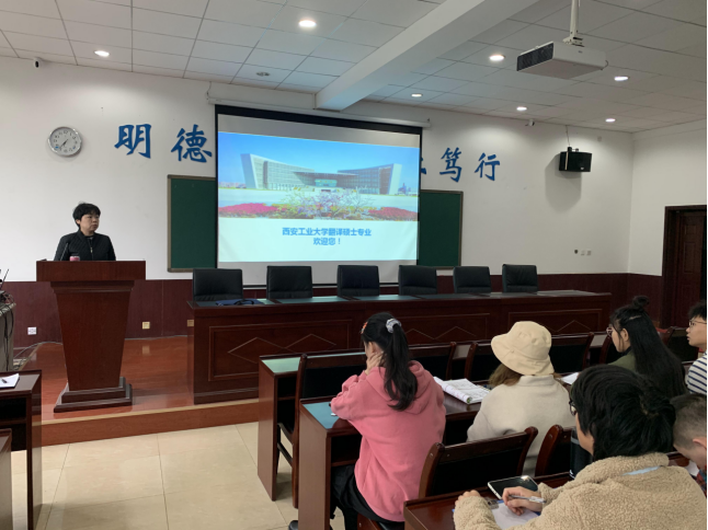 孟静对学校概况、历史沿革、学科建设、人才培养和研究生奖助补贷政策等方面进行了宣讲。