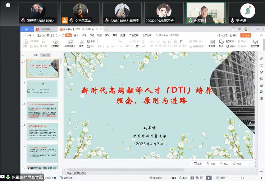 特邀广东外语外贸大学赵军峰教授作题为“新时代高端翻译人才(DTI)培养:理念、原则和进路”的线上学术报告,快猫短视频