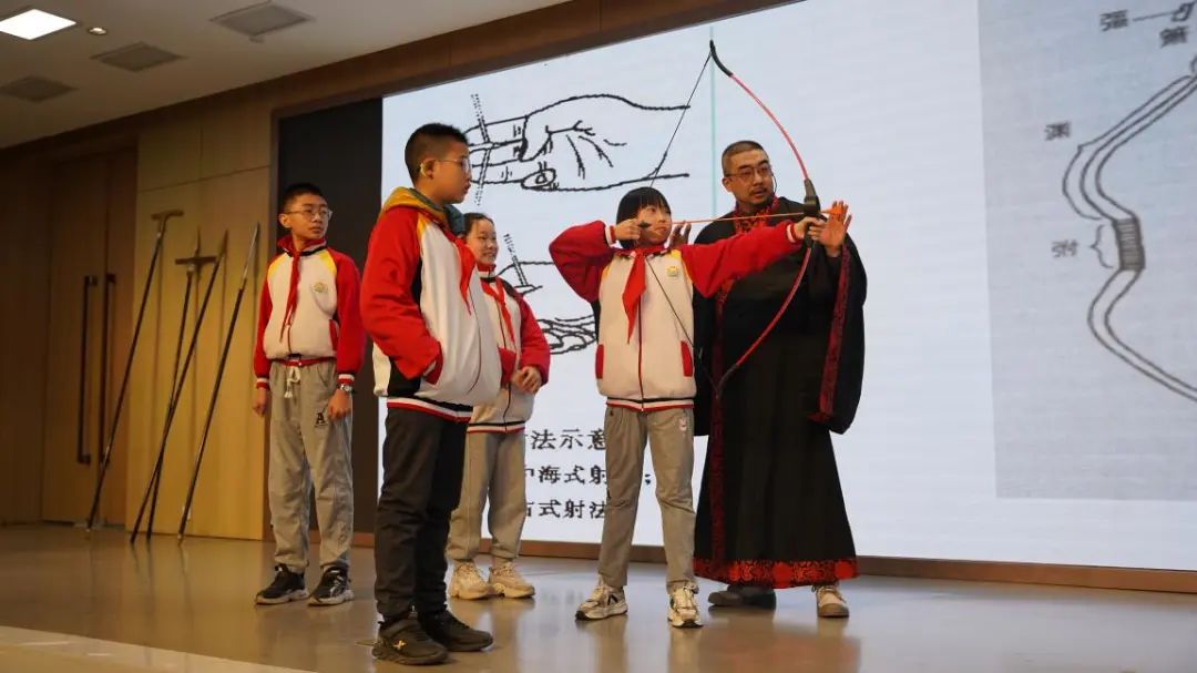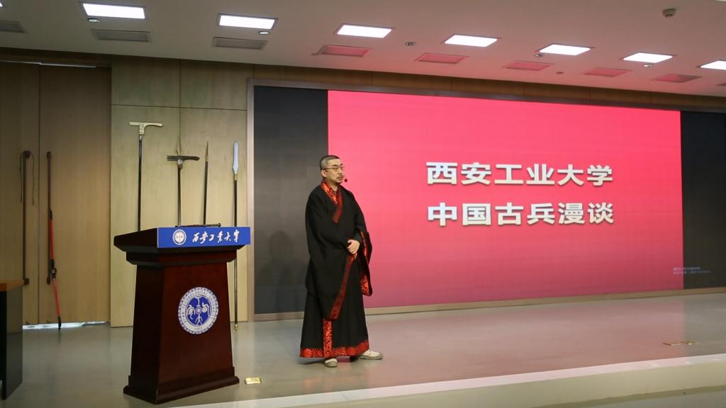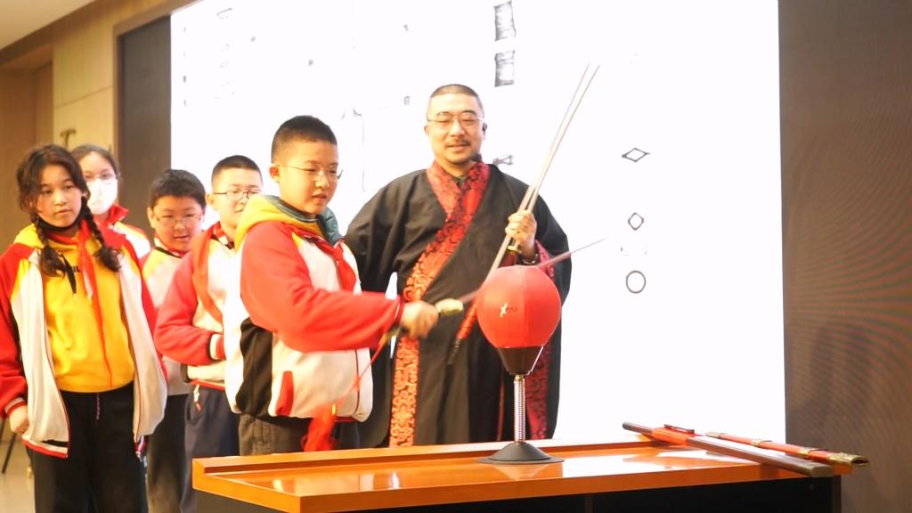 中国兵器文化研究中心研究员伏奕冰博士为我校附小毕业班200余名同学开讲《中国古兵漫谈》专题,主讲人身着传统汉服,介绍了古代冷兵器的历史与演变,并展示了相关模拟实物。