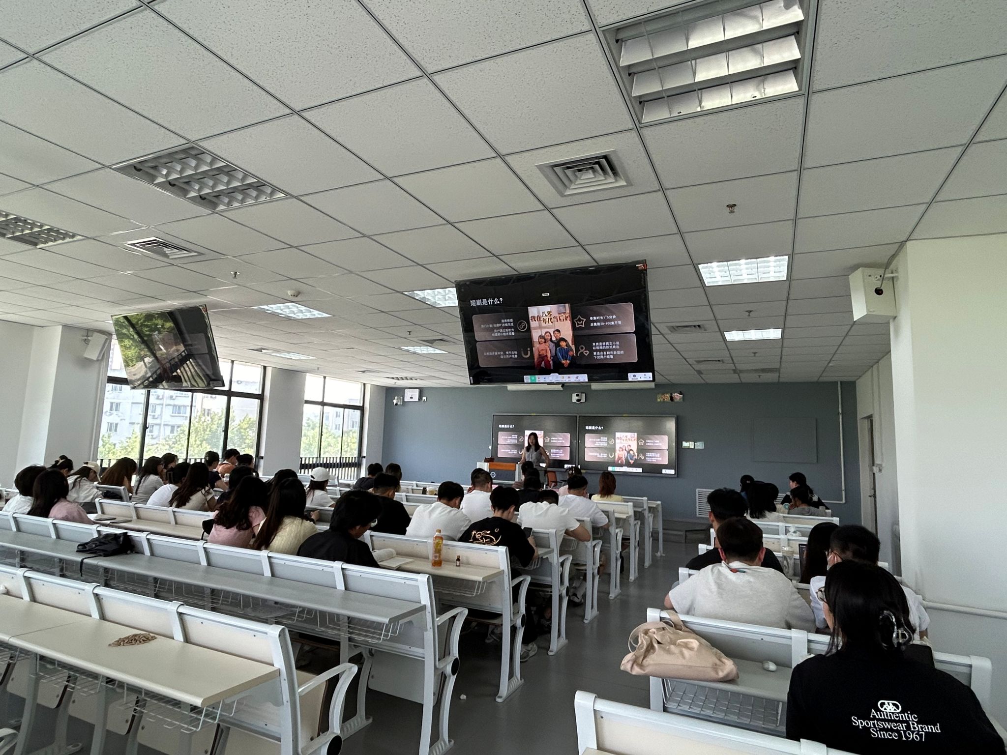 西影集团路谨尧经理分享了西影集团中短剧分销较为成功的达人账号:“多巴胺影视”,组织观看了“多巴胺影视”运营者的经验分享视频。在接下来的提问环节中,同学们与招聘负责人进行了热烈的互动和交流。有的学生对短剧分销的工作形式提出了疑问,希望得到更详细的解答;有的学生对具体的岗位设置和职业发展路径进行询问;还有的学生则关注公司的福利待遇和工作环境,想要了解更多关于公司内部的实际情况。针对学生们的提问,西影集团的招聘负责人和优秀代表都给予了耐心而详细的解答。他们表示,短剧分销并不是只局限于表面上的剪辑工作,它还能锻炼自身的文案能力,在未来可以向编剧、导演方向发展。短剧分销只是西影集团的项目之一,还有编导、摄影摄像等其他岗位,鼓励同学们积极投递简历、参与面试。