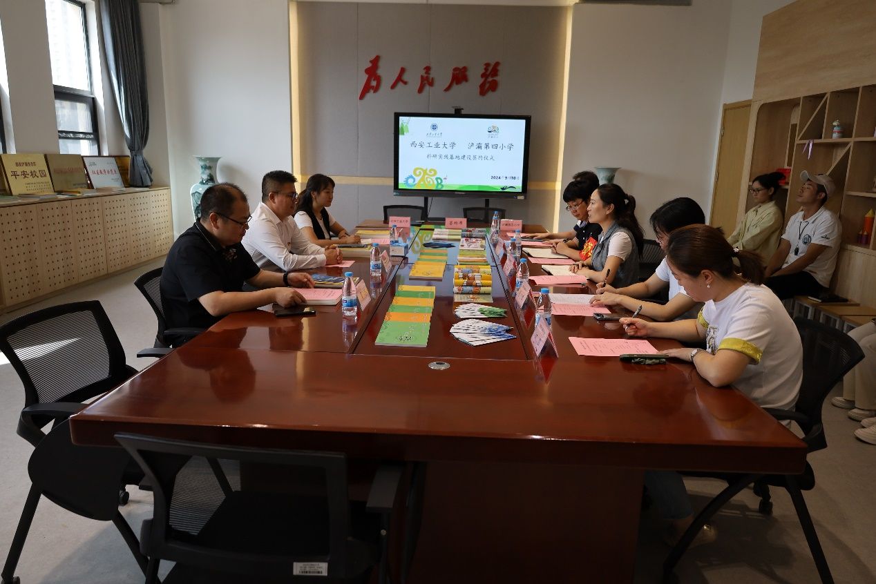 党委书记程建虎、中文系主任吴林、团委副书记王丹丹一行走访西安市浐灞第四小学,双方签署教学科研实习基地并举行揭牌仪式。浐灞第四小学校长党燕宾、副校长蒋彦书、发展部部长张月琪等出席活动。仪式结束后,宾主双方进行了友好的座谈。