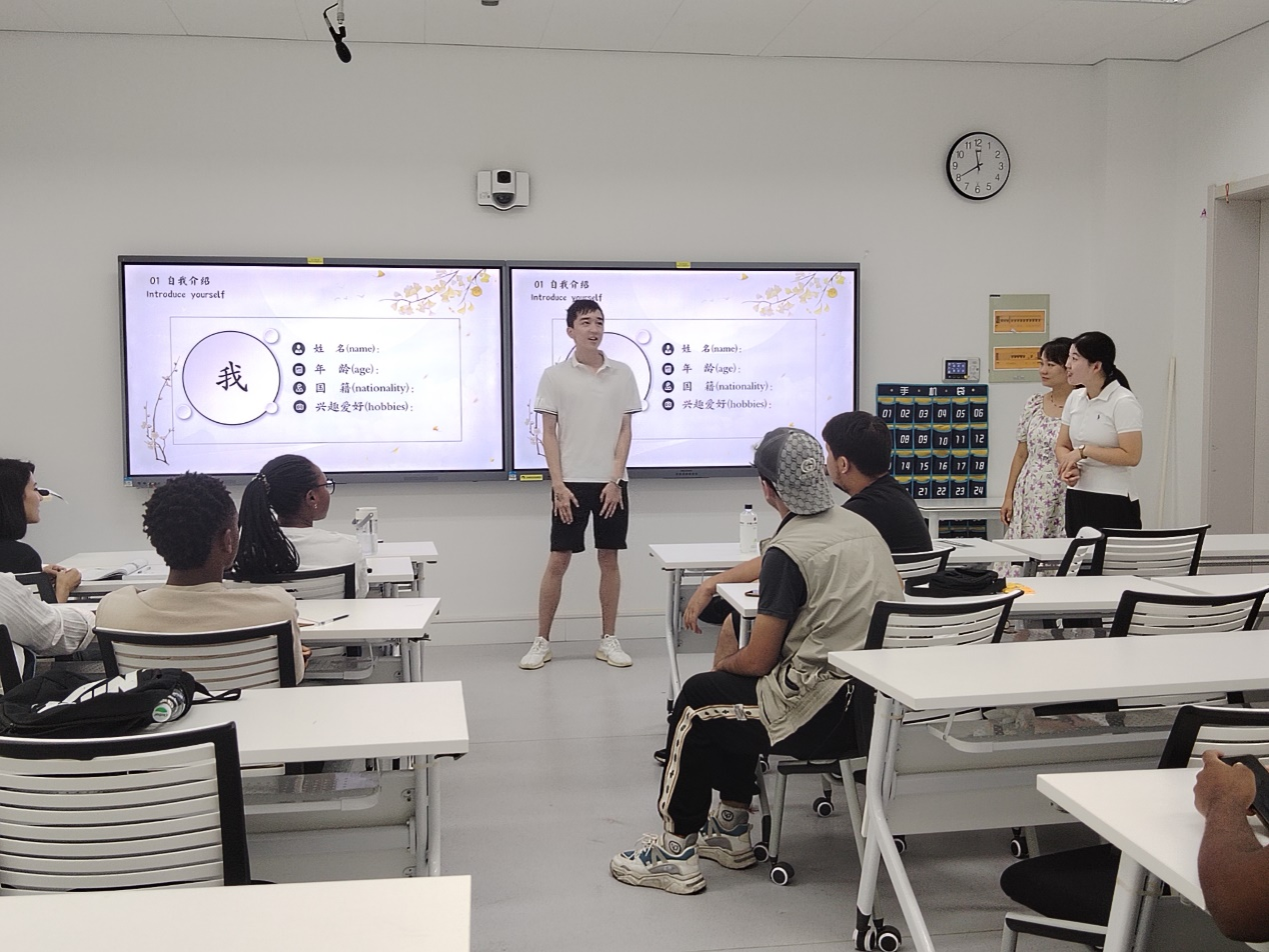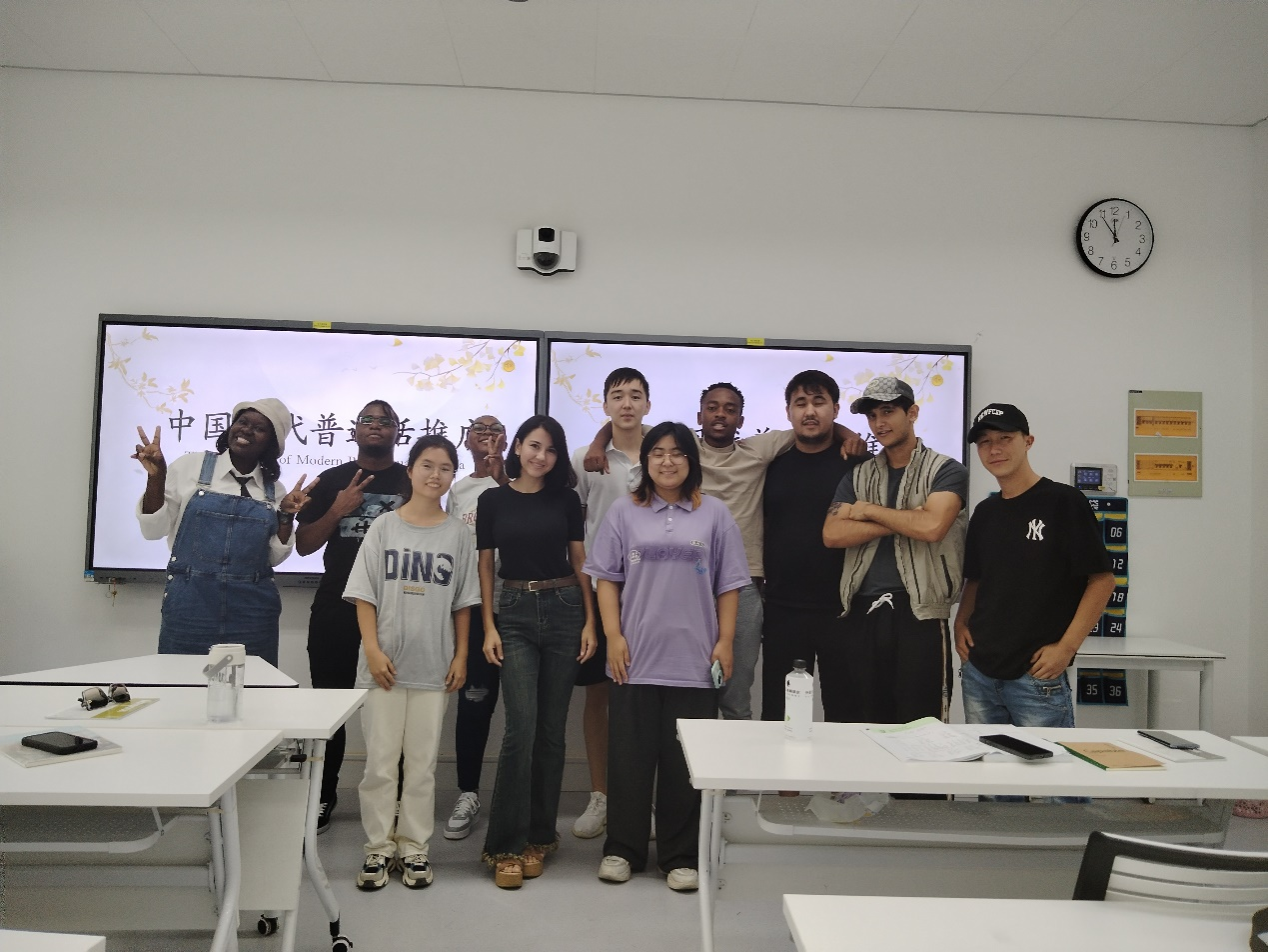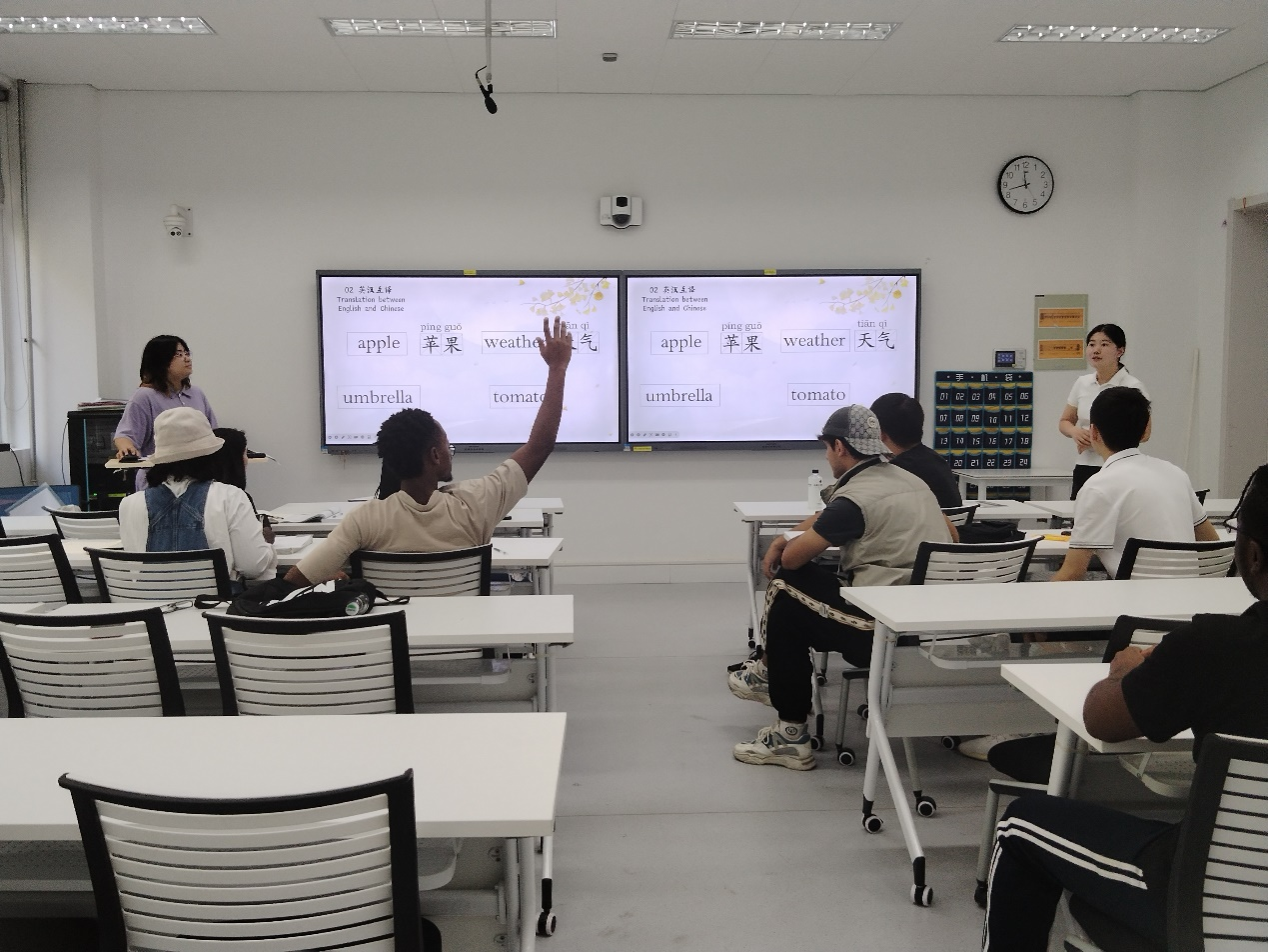 携手留学生策划实施了“共话普通话之美”特色活动。活动中,中国学生向留学生展示了普通话的文化桥梁作用,并深入讲解了汉语声调之美。同时通过诗词朗诵和“猜图挑战”,引领留学生在轻松的氛围中体验中国古典诗词之美,激发其学习普通话的热情。中英文的和谐交响,在教室内交织成一幅绚烂的语言艺术画卷,这种双向交流不仅加深了彼此的了解,激发了留学生学习普通话的热情和兴趣,还深化了留学生对中华文化的认知与热爱,促进不同文化之间的交流和互鉴。