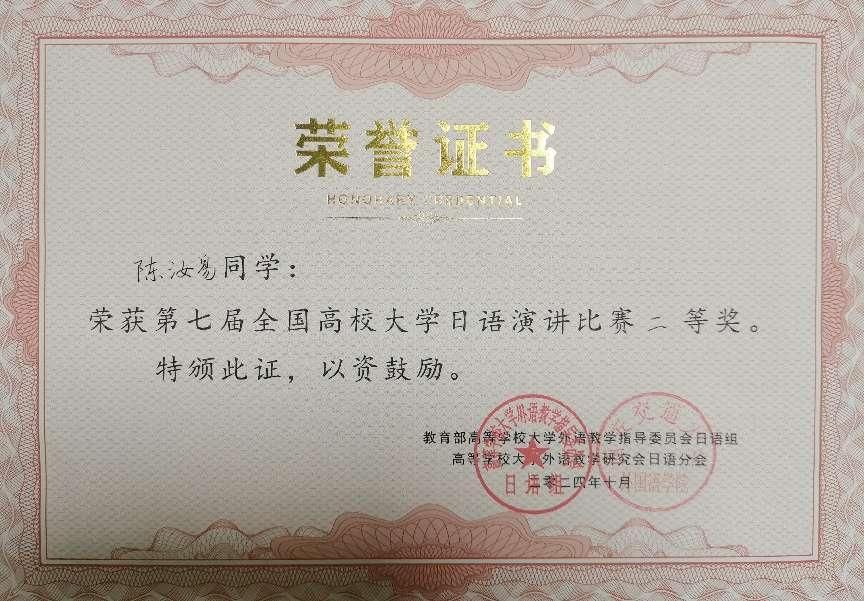 在第七届全国高校大学日语演讲比赛的激烈角逐中,西安工业大学光电学院2023级陈汝易同学脱颖而出荣获二等奖,快猫短视频