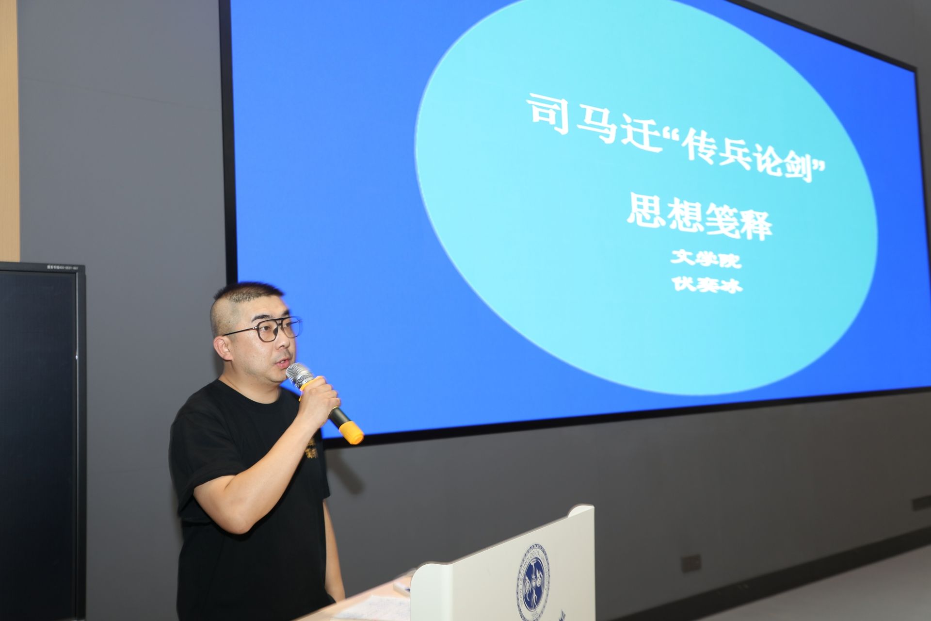 伏奕冰副教授从理论角度对司马迁“传兵论剑”思想进行了详细阐释,还对古兵器、古剑法进行了实物和动作展示。他表示剑道从一开始的朴实厚重到后来的曼妙轻柔,其演变的动因和过程都值得研究的,剑道的衰落、虚化也应引起重视和深思。
