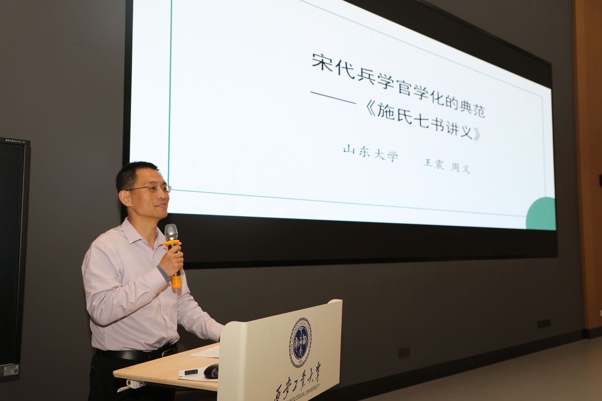 来自山东大学的王震教授以“宋代兵学官学化的典范:《施氏七书讲义》”为题,从施子美生平、《施氏七书讲义》的成书与流传、《施氏七书讲义》的四大特点以及其学术价值四个方面讲述了兵学官学化的发展历程,并将其与新时代的军事文化和军事思想关联起来,提醒我们要推动传统兵学的现代转化,不仅需要深入挖掘其体系建构智慧,更要重视制度史视野下的文本生成机制。