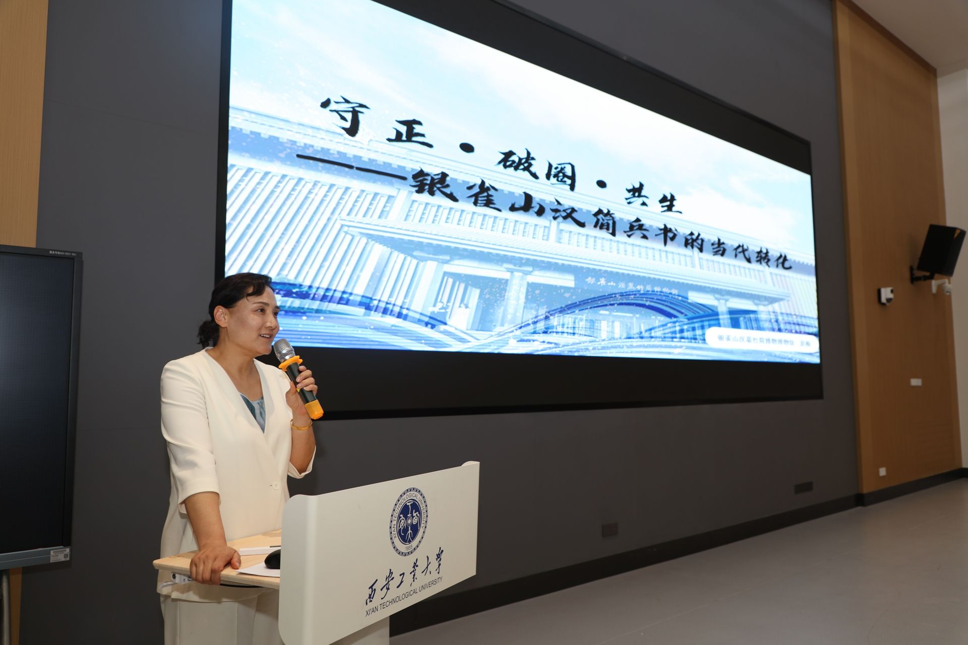 来自《孙子兵法》出土地、山东临沂博物馆的彭梅馆长做了题为“守正·破圈·共生---银雀山汉简文化的当代转化”的报告,从临沂的革命历史与兵学文化底蕴讲起,向大家展示了银雀山汉简丰富的文献史料价值。她指出,思索如何呈现临沂的兵学底蕴、让银雀山汉简中的兵学文化在潜移默化中走入游客脑海将会是临沂博物馆后期发展的重大命题。