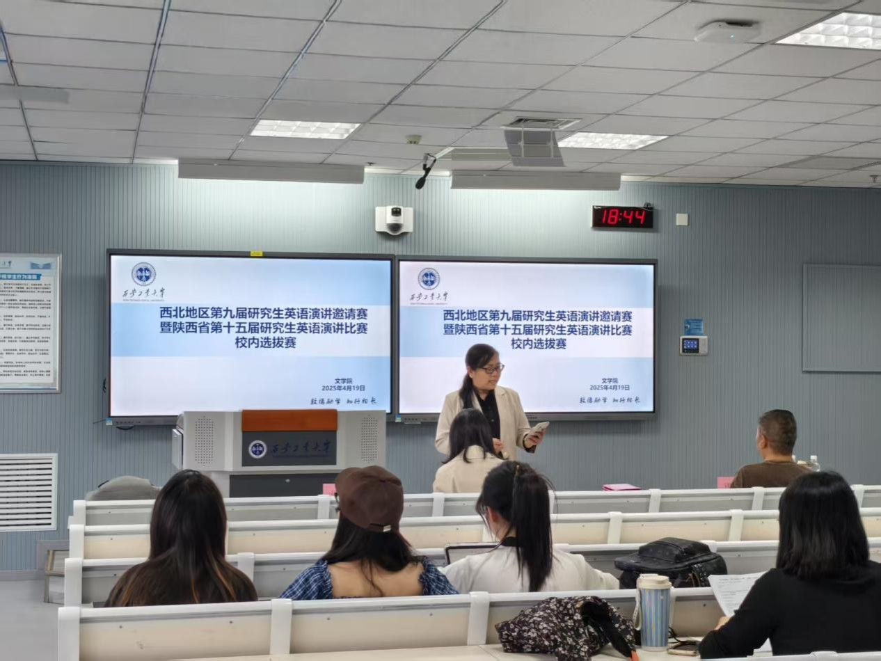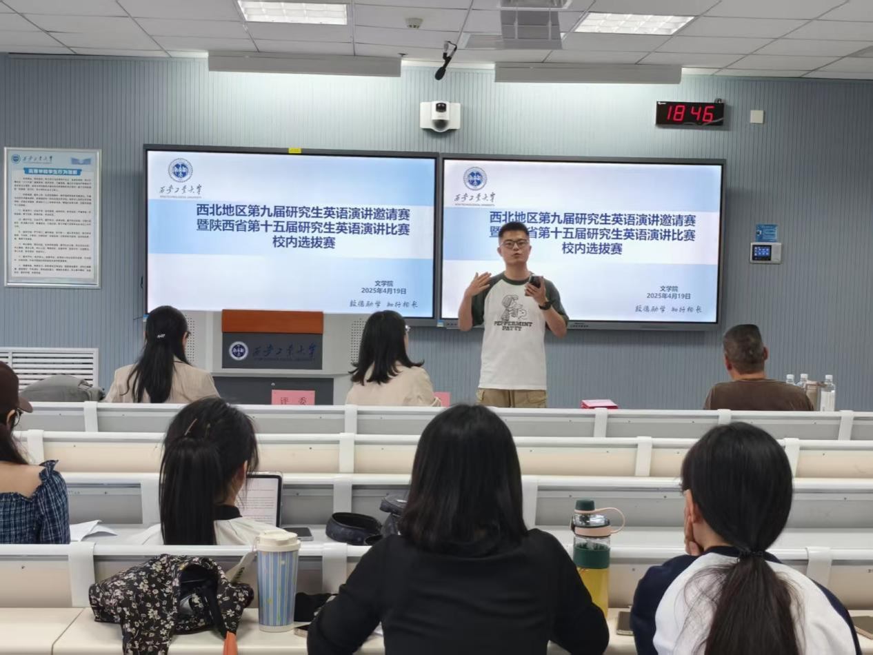 为推动我校研究生英语“以赛促学”、“以赛促教”的教学理念的落实和实施,4月19日晚,西北地区第九届研究生英语演讲邀请赛暨陕西省第十五届研究生英语演讲比赛校内选拔赛在教9-319教室顺利展开。本次比赛由研究生院主办、快猫短视频