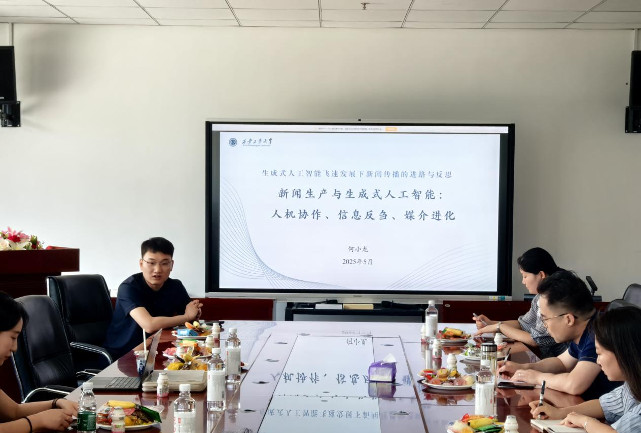 在教9 - 320报告厅成功举办“生成式人工智能飞速发展下新闻传播的进路与反思”学术沙龙活动。本次活动由优秀研究生代表何小龙和张景仪担任主讲嘉宾,特邀薛龙副教授和郑佳老师担任点评嘉宾,吸引了新闻与传播专业众多研究生积极参与。