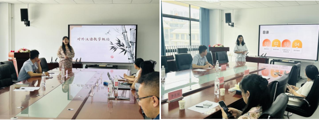 活动伊始,三位入围校晋级赛复赛的教师依次进行了精彩的模拟授课。李亦宁老师以《网络舆情监控与研判》课程为载体,深度融入产教融合理念,精选互联网企业、政务新媒体等领域的真实产业案例,引导学生将理论知识转化为服务产业发展的实操能力,生动展现了“课堂对接产业、教学链接实战”的产教融合创新路径。陈玲琳老师在《英语文学导论》的创新教学展示中,将经典文本研读与数字素养培养、跨文化思辨能力提升深度融合的教学设计,精准体现了教创赛 “以学生为中心”的创新理念,环环相扣的教学环节既展现专业深度,又充满时代气息,令观摩教师深受启发。作为青年教师讲课比赛选手,李若琛老师在《对外汉语教学概论》的现场讲授中,针对对外汉语教学中的痛点问题,创新采用“对比教学法+跨文化情景模拟”,课堂上巧妙运用“中文教学资源库”平台,同步开放互动答题系统开展即时学情诊断,让理论知识与教学实践在动态生成中深度融合。既彰显了青年教师的专业素养,更展现了青教赛“以赛促教、以教促学”的赛事宗旨。