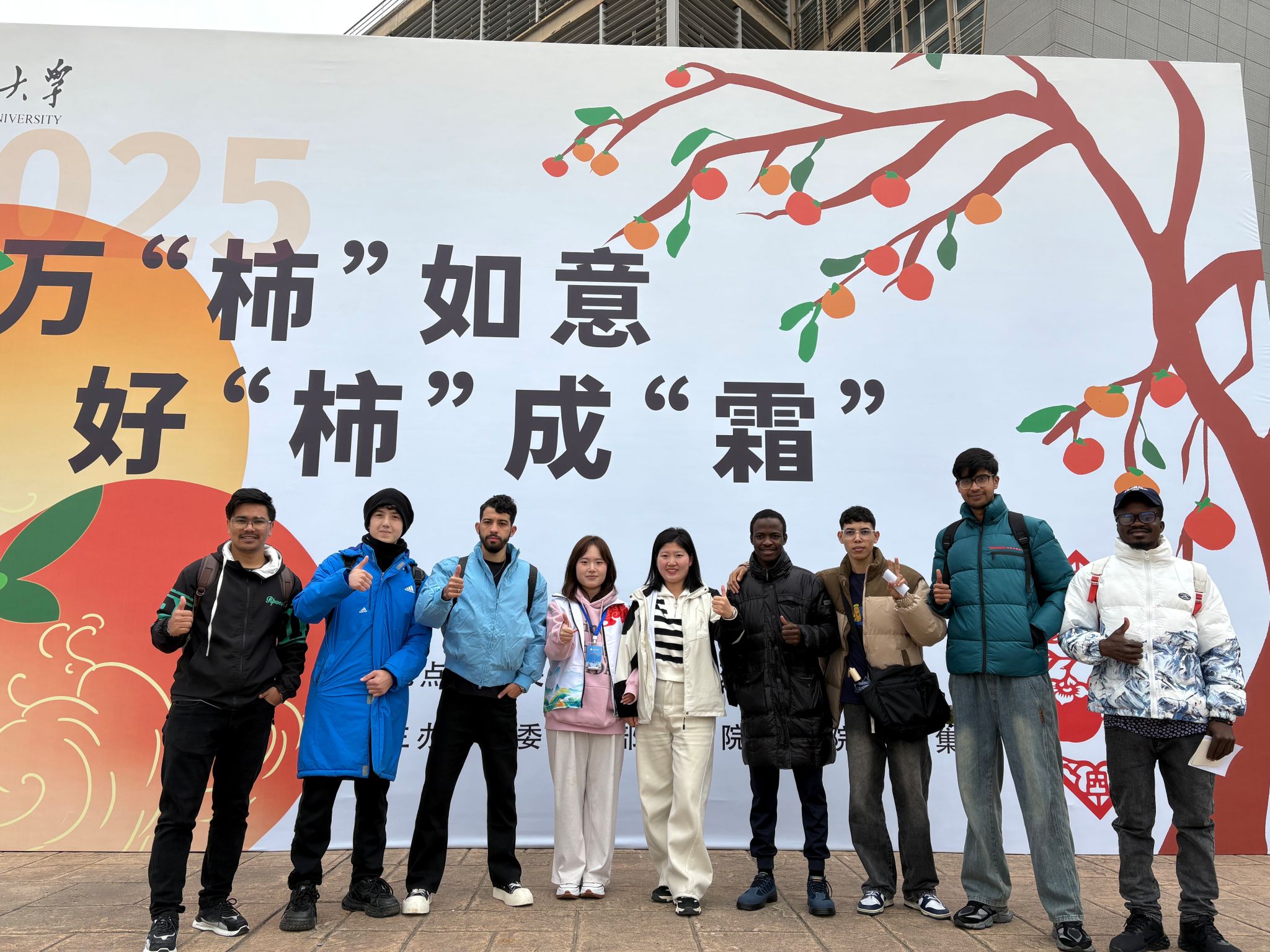 学子扮演NPC“如意”身着汉服,以“柿”“秋”及相关谐音词为引,与前来挑战的师生展开诗词对决。“秋丛绕舍似陶家,遍绕篱边日渐斜”“柿叶翻红霜景秋,碧天如水倚红楼”,一句句经典诗词在广场上流转。随后五大特色展区依次排开,处处洋溢着秋日的暖意与文化的气息。