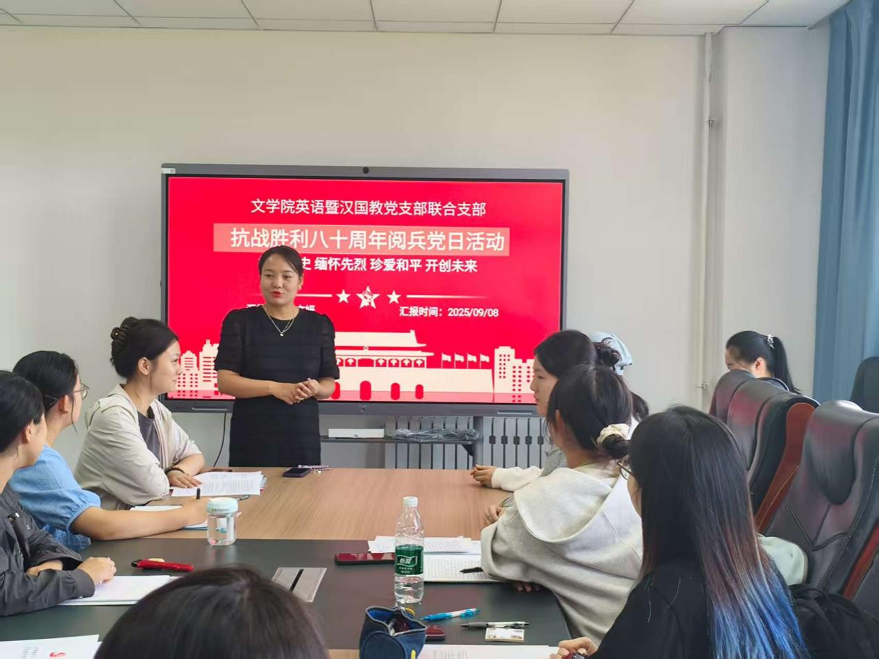 汉国教英语本科生党支部在教9-320开展了纪念中国人民抗日战争暨世界反法西斯战争胜利主题教育、知识竞赛活动,支部全体党员参加。