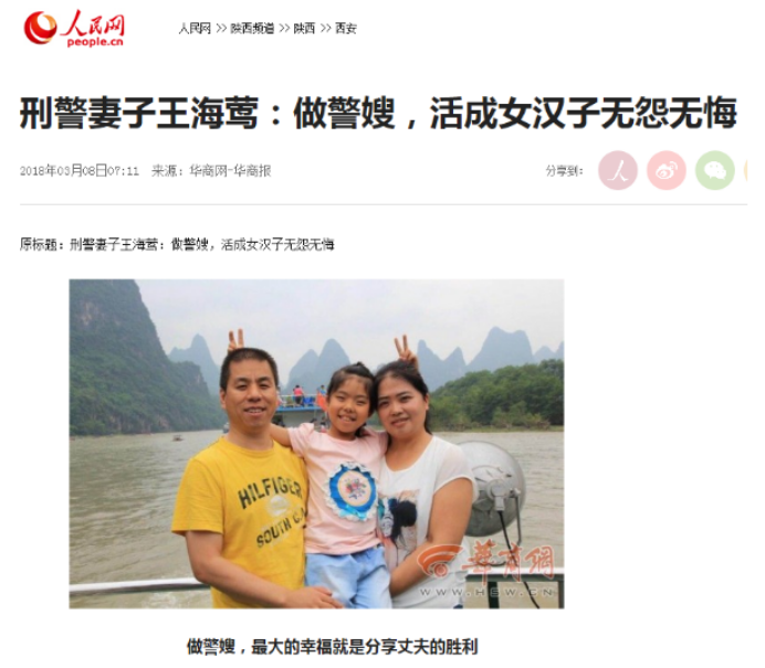 20183月,华商报的一篇题为《刑警妻子王海莺:做警嫂,活成女汉子无怨无悔》被广泛关注,包括人民网在内的多家主流媒体纷纷转载。一时间,“警嫂”“女汉子”等称呼,成为王海莺老师的“标签”。然而,在巨大的社会荣誉面前,在多个不同的身份当中,王海莺老师仍然默默坚持做好自己的本职工作——人民教师。