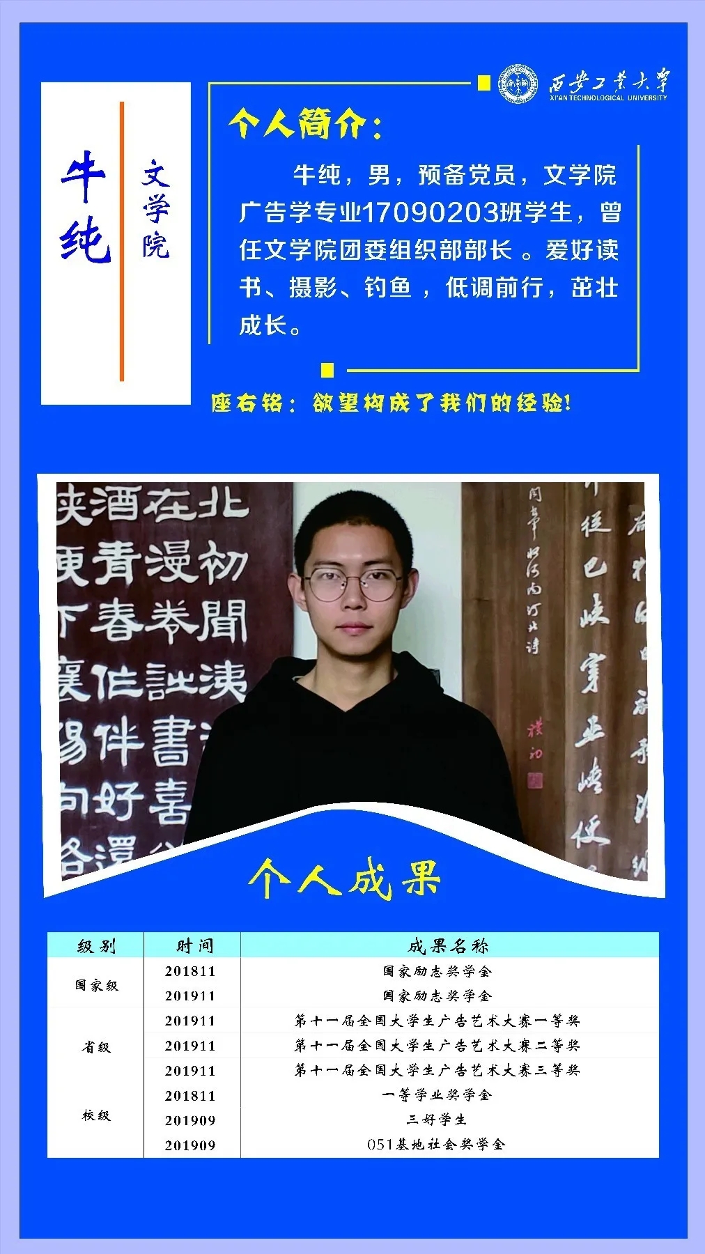 牛纯同学荣获“十佳大学生”称号;朱秋雨、李雨轩同学荣获“十佳大学生”提名奖;宋芸同学荣获“十佳大学生”入围奖。
