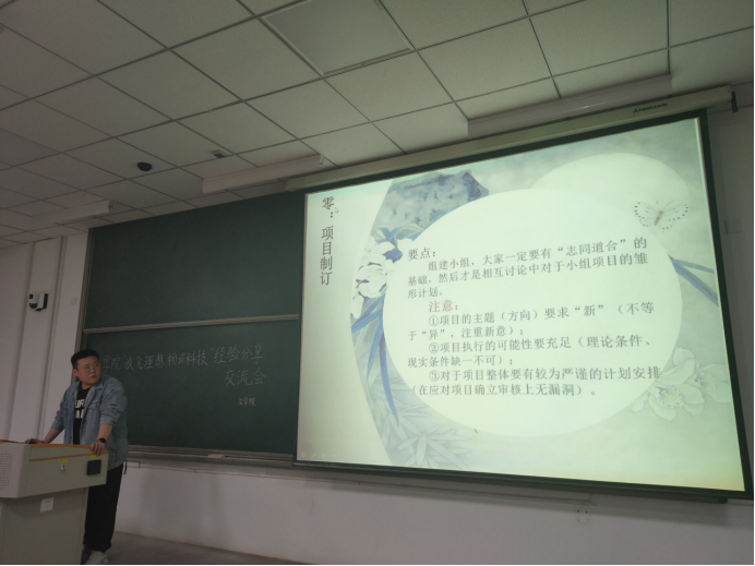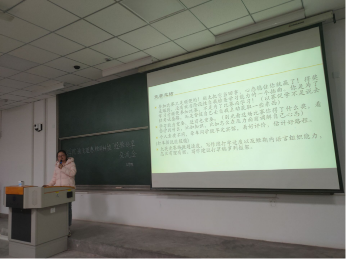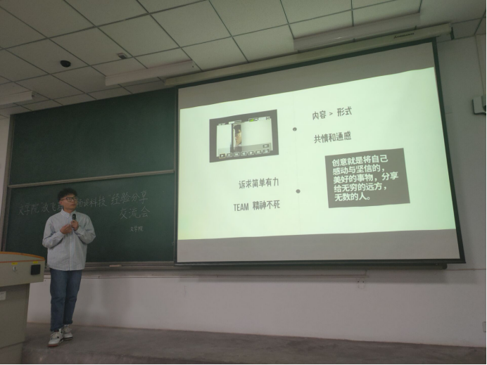 首先,汉语言文学专业游浩峰同学根据自己已结题的国家级大学生创新创业大赛内容,为同学们展示了自己的想法及材料书写注意事项,并通过自己项目内容实施的经历与感悟为学生们提供一系列经验和借鉴。接着,广告学专业蒋国亚同学通过分享影响他人生的三句话,引出了自己参加大学生广告艺术大赛的相关经验,并提醒同学们要注重创意的作用,要走出舒适区去挑战自己。最后,英语专业郑裕玲同学根据自己参加的各类学科专业竞赛的经历,概述了自己参加外研社杯写作比赛与演讲比赛的感受,向同学们传授了许多实用的学习方法。