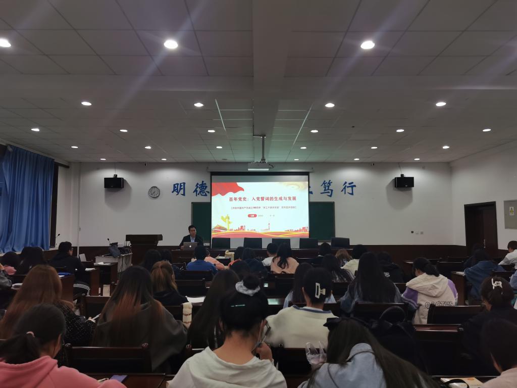 党史启动仪式结束后,李聪老师为学生们讲述了以“百年党史:入党誓词的生成与发展”的党史学习第一讲。