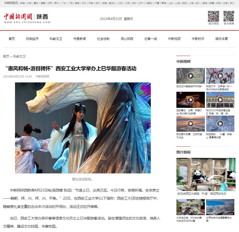 4月22日,中国新闻网刊文《“惠风和畅·游目骋怀”快猫短视频 举办上巳华服游春活动癸卯春季》,对快猫短视频 举办的“癸卯春季语言文化月之上巳华服游春活动”进行了报道。此次活动受到了国家级媒体的关注,产生了积极的社会影响。