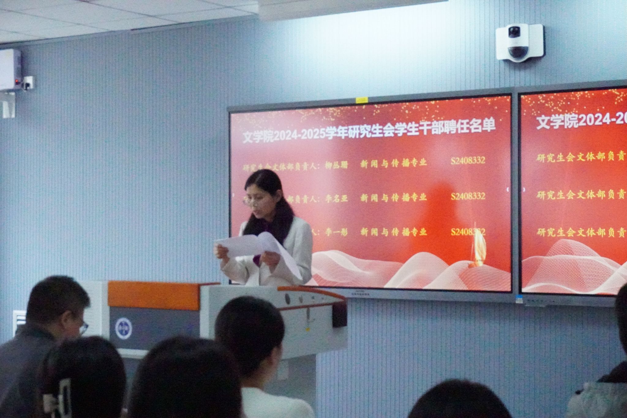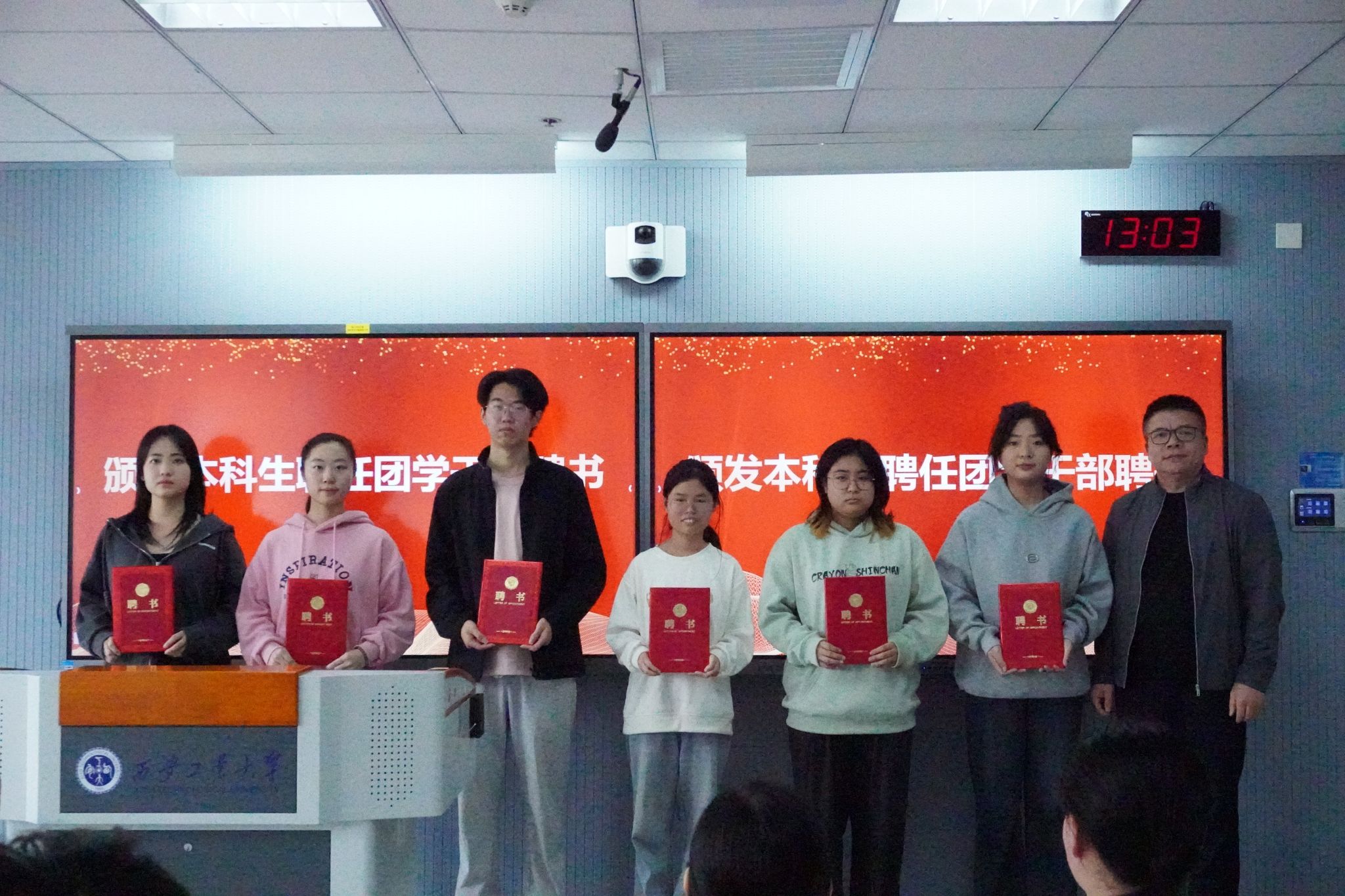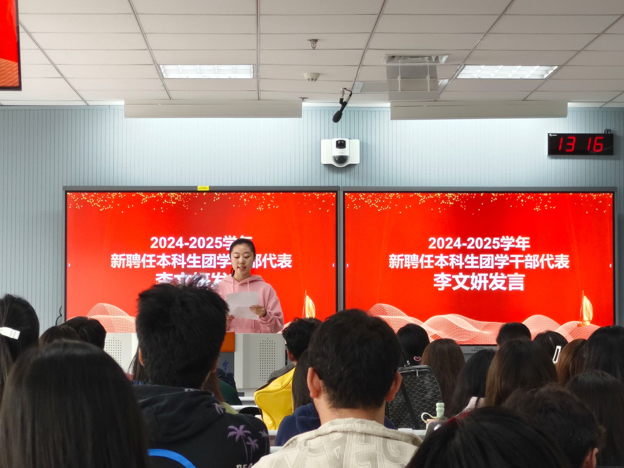 2024-2025学年本科生团学干部的决定》,吴妍妍、张春为新聘任的17名研究生团学干部颁发聘书,程建虎、张郁、李聪、王磊为新聘任的36名本科生团学干部颁发聘书,鼓励他们在新岗位上继续发光发热。