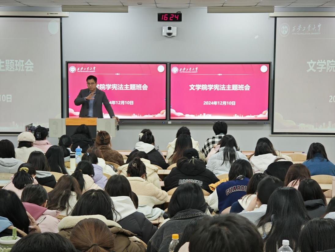 2023级开展“弘扬宪法精神,共建法治校园”主题班会。
