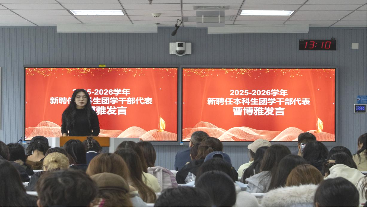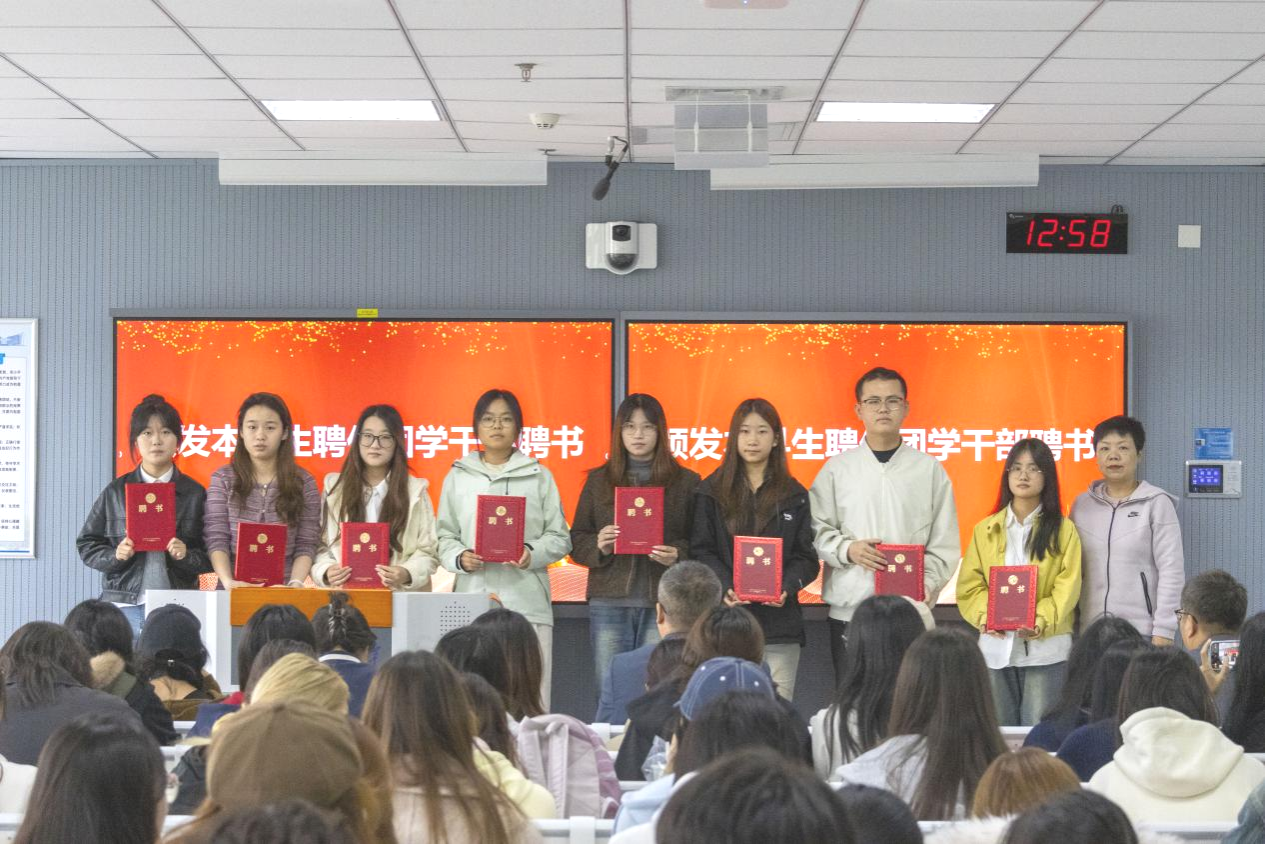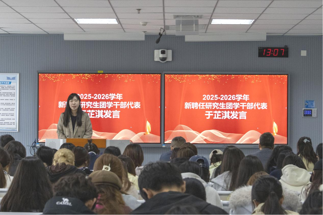 2025-2026学年本科生团学干部的决定》,吴妍妍为新聘任的17名研究生团学干部颁发聘书,程建虎、张郁、李聪为新聘任的30名本科生团学干部颁发聘书,鼓励他们在新岗位上继续发光发热。