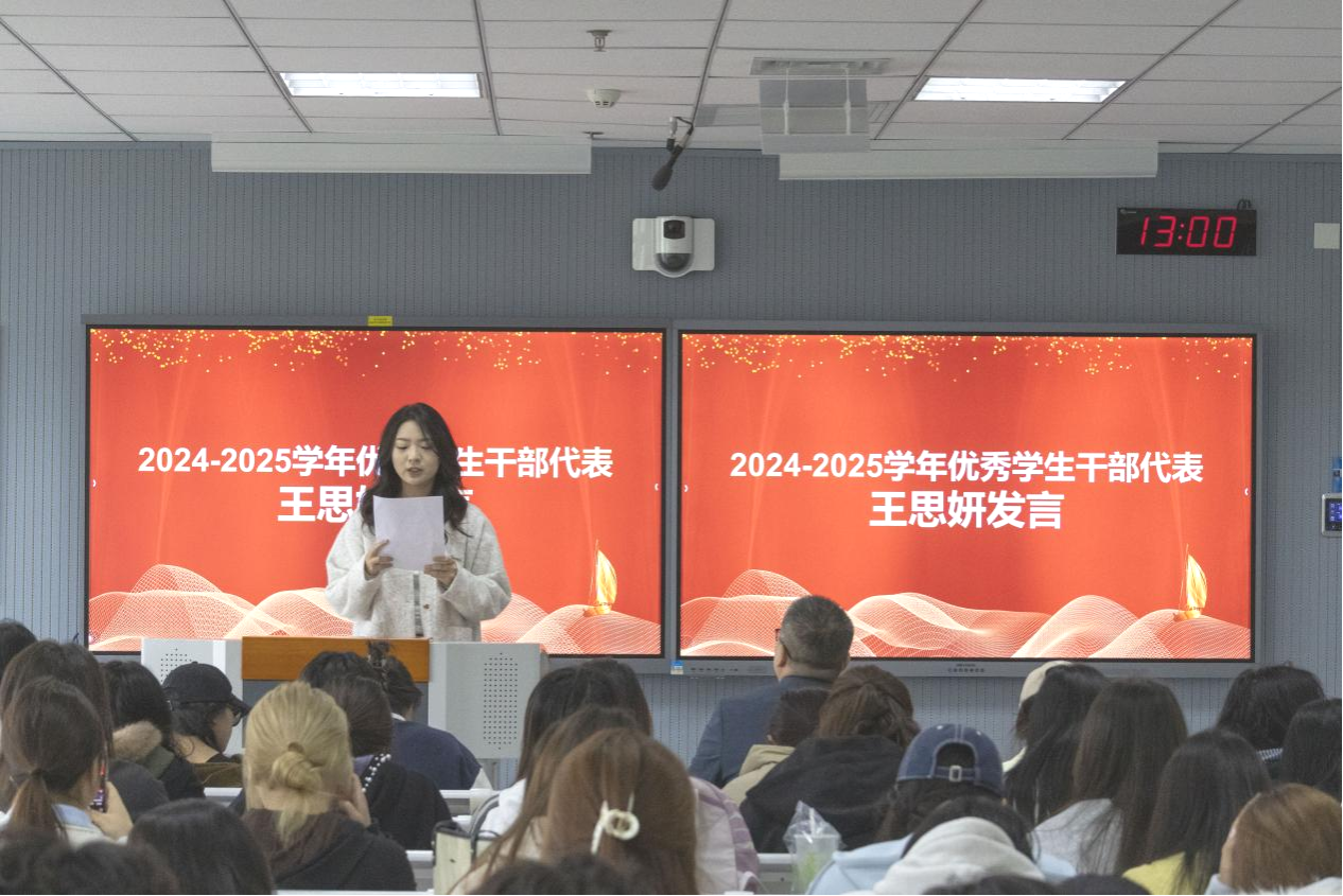 随后,2024-2025学年团学干部代表王思妍发言。王思妍同学回顾了过去一年快猫短视频