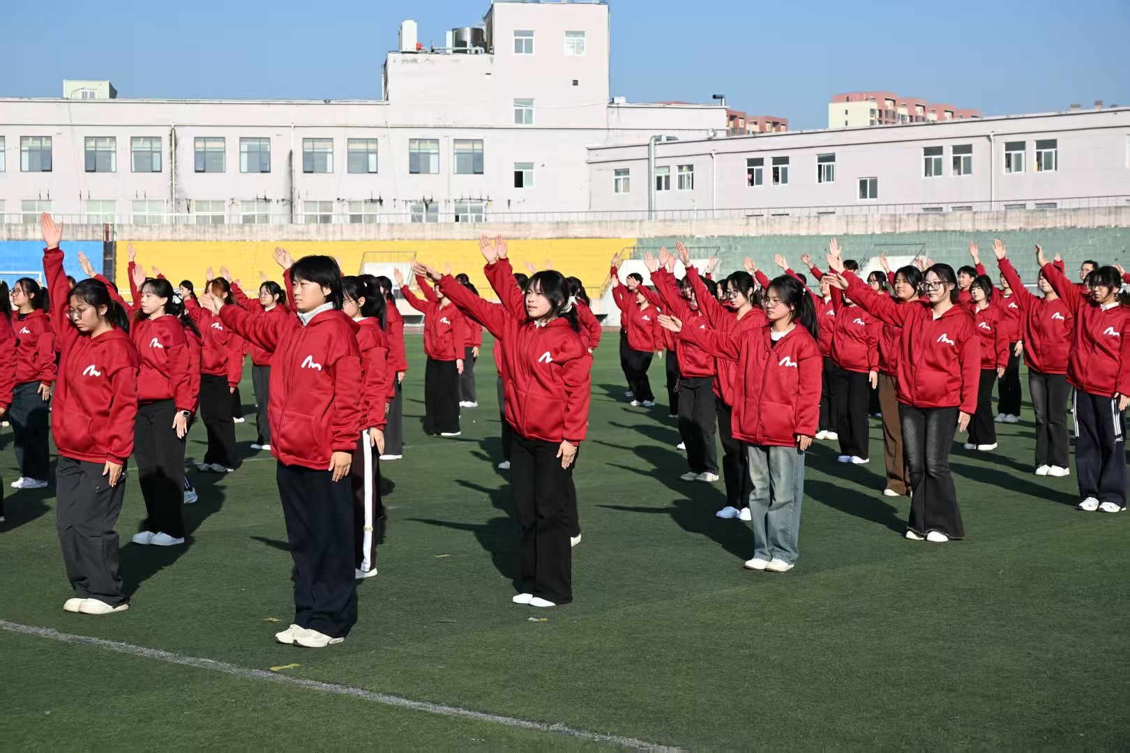 高度重视此次比赛,精心选拔103名师生组建了参赛队伍。训练期间,队员们克服学业繁忙等困难利用课余时间刻苦训练:从基础动作的规范矫正到整套流程的连贯衔接,从队形队列的精准排布到精神状态的全面提升,每一个细节都反复打磨、精益求精,大家相互督促、互帮互助,在汗水与坚持中凝聚起强大的集体向心力。